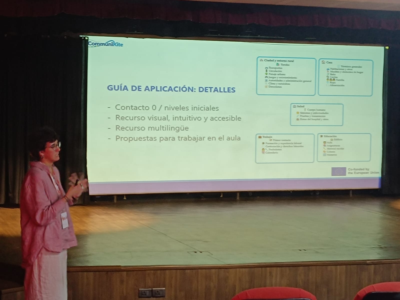 From 26 May to 6 June, some of our colleagues from the Communikite project participated in the third edition of the Diploma in Hispanic Linguistic Studies (DELHI) in New Delhi, India. This event was organised by the International Centre for Spanish Studies at the University of Salamanca (CIE-USAL) in collaboration with the Cervantes Institute in New Delhi, funded by the Strategic Project for Economic Recovery and Transformation (PERTE) New Economy of Language with funds from the Recovery, Transformation and Resilience Plan. Below, you can see our colleague Lucía Morán Gaitero (General Linguistics, USal) presenting Communikite to sixty attendees.