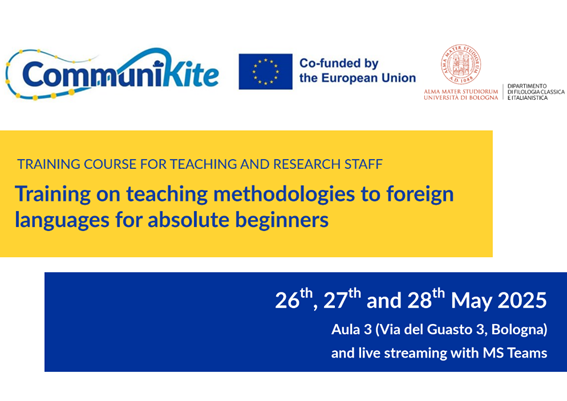 This week, for three days (May 26-28) several members of each university that makes up the Communikite consortium will gather at the University of Bologna, one of the oldest universities in the world, for an interesting workshop. This training course for teaching and research staff will explore some of the crucial aspects of foreign language teaching methodologies for absolute beginners. Keep tuned for more news!